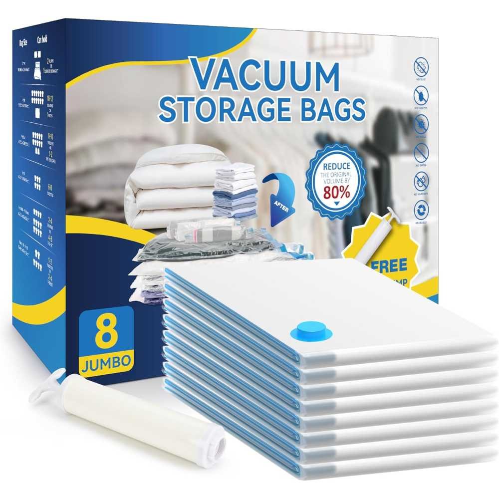 [Amazon] 8-Pack Simple Deluxe Jumbo Space-Saving Vacuum Storage Bags w/ Hand Pump - $5.97 (was $14.99)